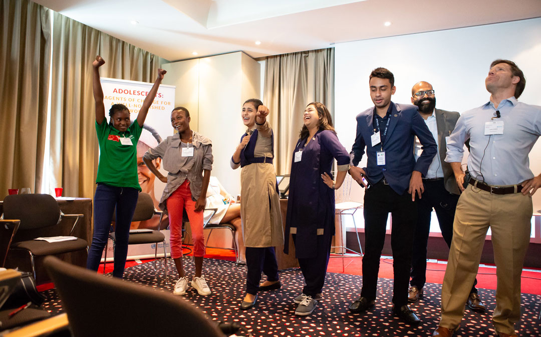 Nine adolescents from four different countries (Bangladesh, Indonesia, Pakistan and Zambia) took part in the GAIN/WHO "Adolescent: Agents of Change for a Well-Nourished World" event. © GAIN/Pierre Albouy